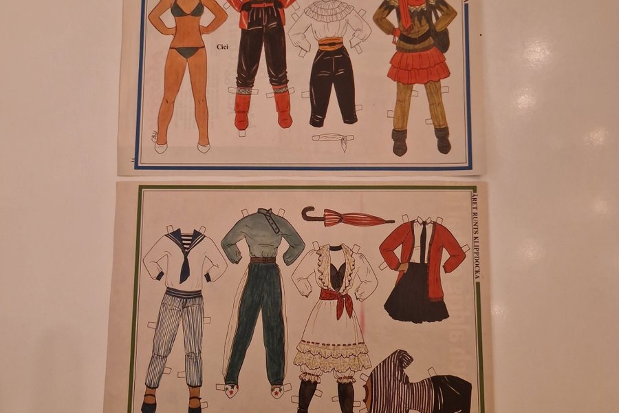 Kläder till Cici klippdocka. Inkluderar bland annat sjömanskostym och andra modekläder.