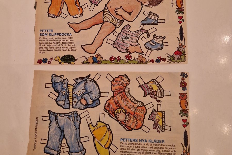 Klassisk klippdocka med Petter och hans kläder. Klipp ut och klä på honom! Perfekt för barn som gillar att pyssla och leka.