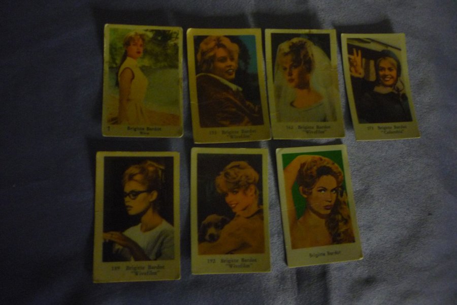 7 filmisar Brigitte Bardot kort.Wive 1,153,162,173,189,192,Namnbild x 1.