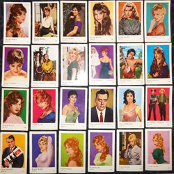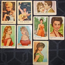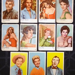 Samling med samlarbilder, filmstjärnor, filmisar, med Brgitte Bardot.