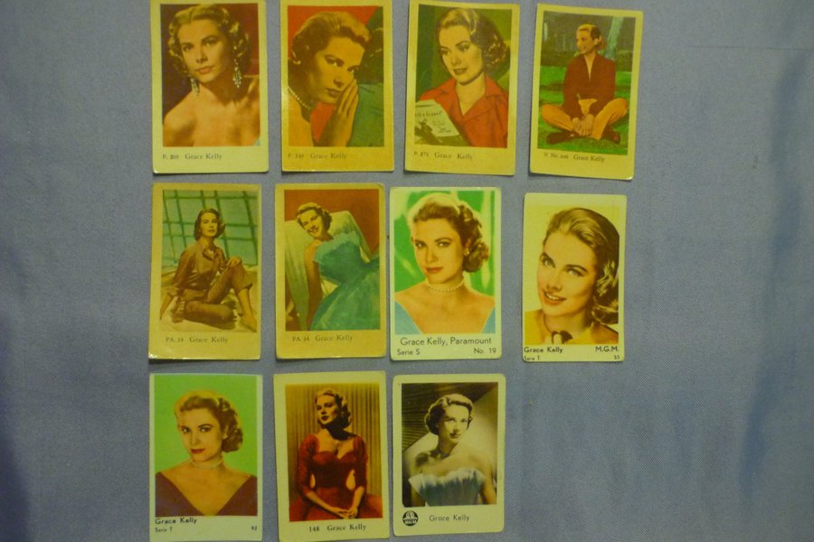 11 filisarGrace Kelly. är märkta med olika nummer och serier, inklusive "P. 203 Grace Kelly", "P. 249 Grace Kelly", "P. 275 Grace Kelly", "X Nr. 206 Grace Kelly", "PA. 24 Grace Kelly", "PA. 34 Grace Kelly", "Grace Kelly, Paramount Serie S No. 19", "Grace Kelly Serie T M.G.M. 53", "Grace Kelly Serie T 92" och "148 Grace Kelly".