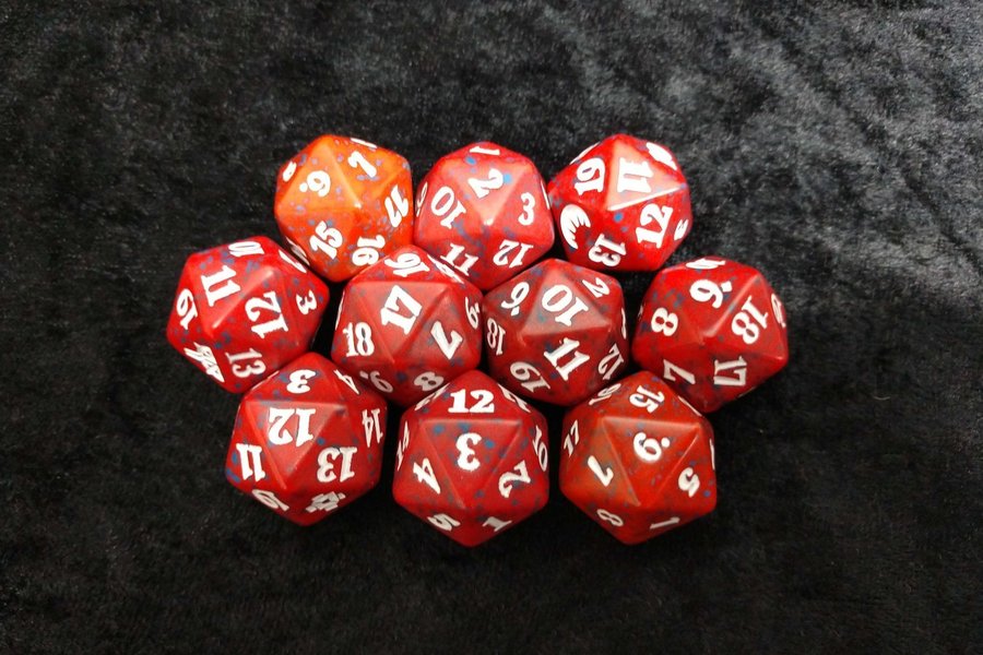 10st d20 Spindown Tärningar, Röda