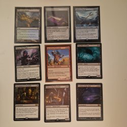 Magic the Gathering kort från olika set. Inkluderar kort som Grafted Exoskeleton, Hexavus, Tablet of Compleation, Zabaz, the Glimmerwasp, March of Otherworldly Light, Baleful Strix, Prophetic Bolt, Éowyn, Fearless Knight, Frodo, Adventurous Hobbit, Blaster, Combat DJ, Lathiel, the Bounteous Dawn, Voidslime och Underworld Cerberus.