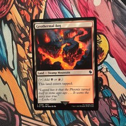 Ett Magic The Gathering kort från serien Final Fantasy. Kortet heter Geothermal Bog och är ett Land - Swamp Mountain kort.