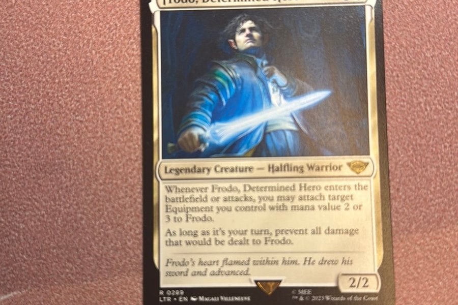 Magic: The Gathering kort från serien Lord of the Rings. Kortet är Frodo, Determined Hero.