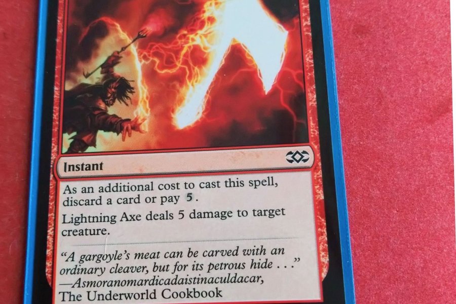 Ett Magic The Gathering kort från setet The Underworld Cookbook. Kortet heter Lightning Axe.