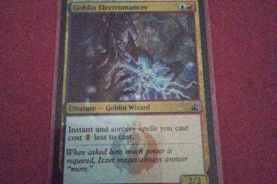Magic The Gathering kort. Goblin Electromancer. Creature - Goblin Wizard. Instant and sorcery spells you cast cost 1 less to cast. RVR EN SVETLIN VELINOV