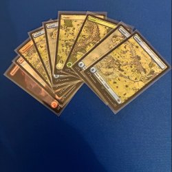 Magic the Gathering kort. Kortet är ett Basic Land av typen Mountain. Kortet är från upplagan "The Lord of the Rings: Tales of Middle-earth". Foiled.