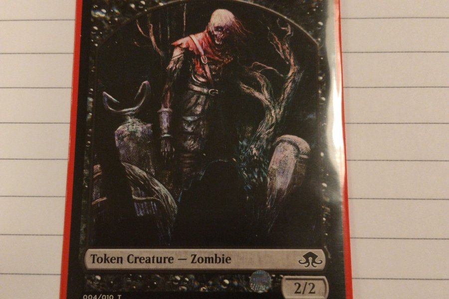 Magic The Gathering Zombie Token från upplagan EMN. Kortet är designat av Seb McKinnon och är från 2016.