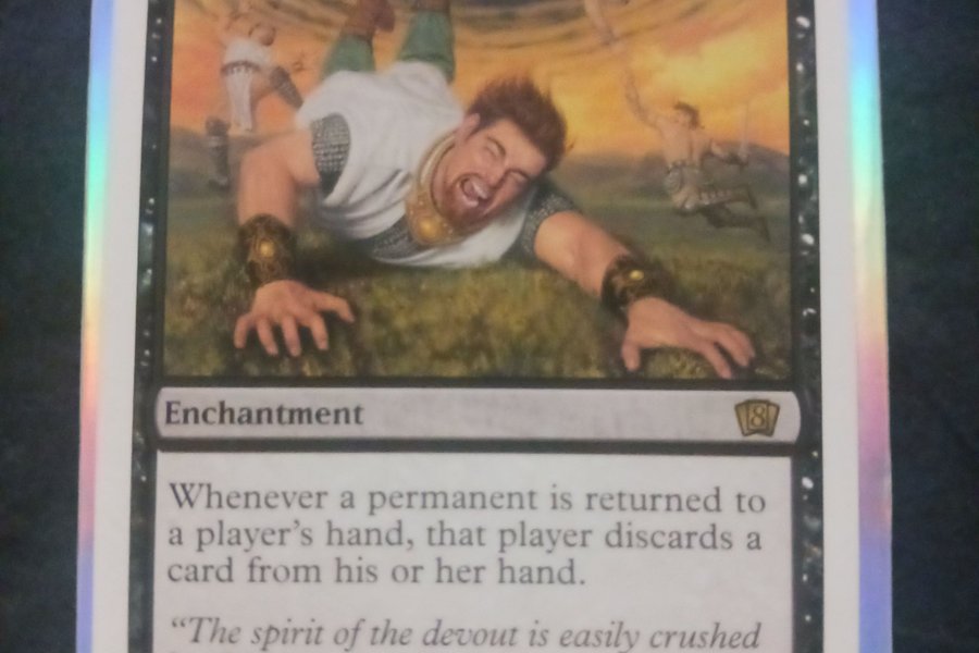 Warped Devotion är ett förtrollningskort. När en permanent återvänder till en spelares hand, kastar den spelaren ett kort från sin hand.