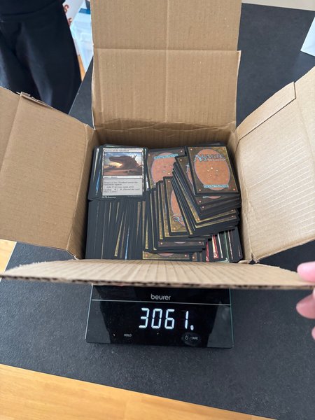 En samling Magic: The Gathering-kort. Vikten är 3061 gram. Mtg kort blandade utgåvor
