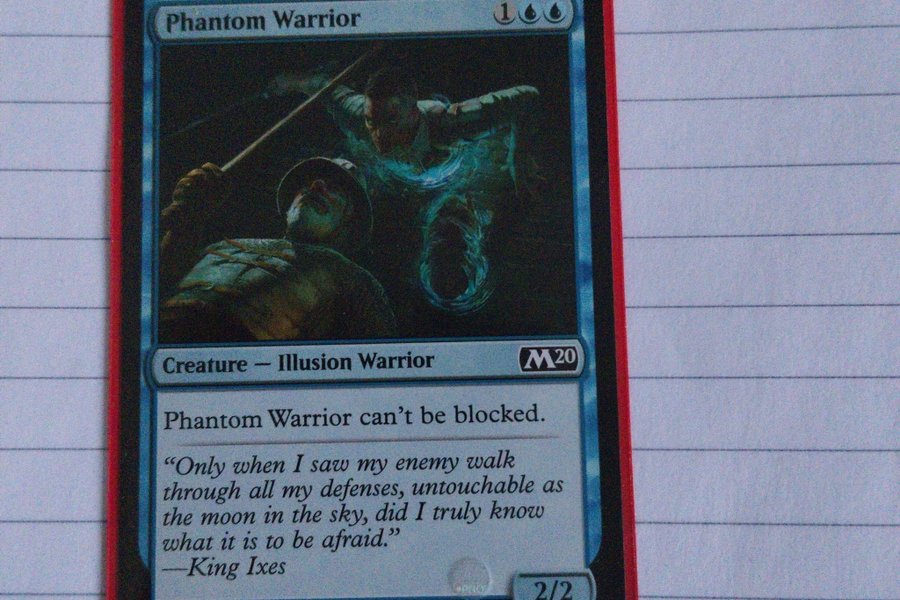 Kortet är av typen "Creature - Illusion Warrior" och har förmågan "Phantom Warrior can't be blocked". Kortet är numrerat 316/280 från M20-serien och är illustrerat av Anna Podedworna.