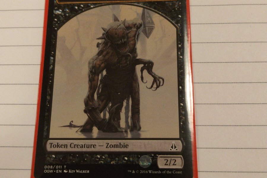 Magic the Gathering-kort från "Oath of the Gatewatch" (OGW) setet. Detta är en Zombie Token-kort, numrerat 008/011 T. Kortet är av typen Token Creature - Zombie och har styrkan 2/2. Illustratör är Kev Walker. Utgivet av Wizards of the Coast 2016.