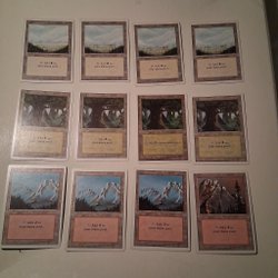 Ett set med Magic the Gathering Basic Lands. Korten är av typen "Basic Land" och kan användas för att generera mana i spelet. De är en viktig del av alla Magic the Gathering-lekar.