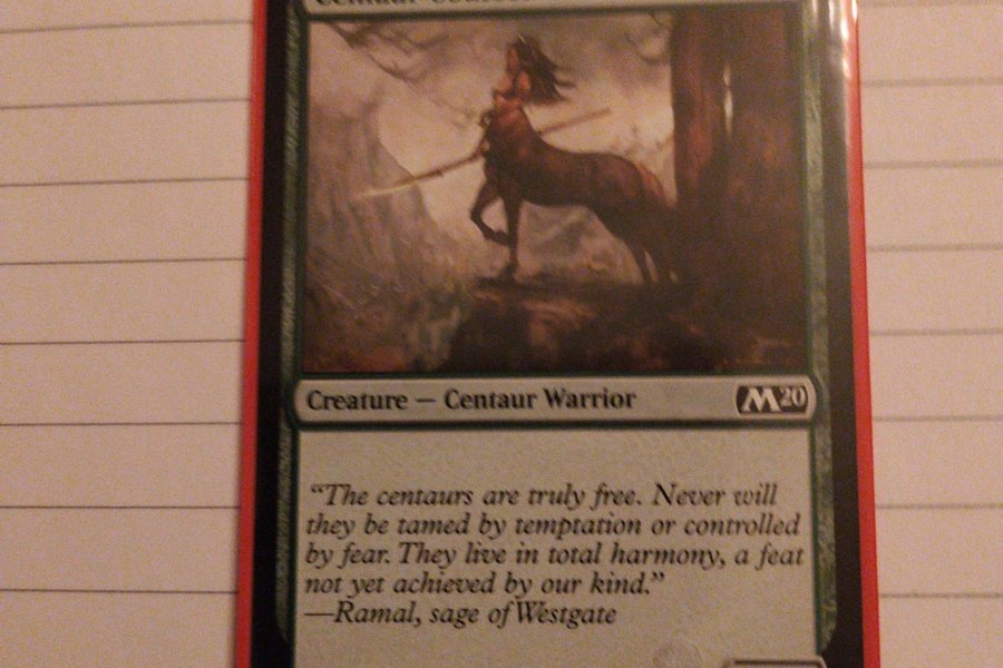 Centaur Courser från Magic the Gathering. Kortet är av typen "Creature - Centaur Warrior" och har "3/3" i styrka och tålighet. Texten på kortet lyder: "The centaurs are truly free. Never will they be tamed by temptation or controlled by fear. They live in total harmony, a feat not yet achieved by our kind." -Ramal, sage of Westgate. Kortet är numrerat 168/280 C och är från upplagan M20. Illustratör är Vance Kovacs.