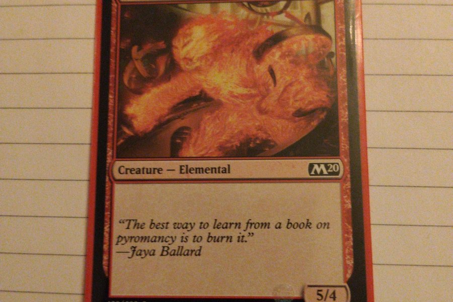 Kortet "Fire Elemental" från Magic the Gathering. Detta är ett varelsekort av typen Elemental. Kortet har en styrka på 5 och tålighet på 4.