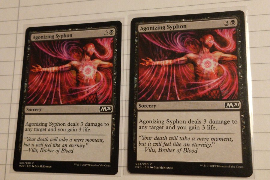 Agonizing Syphon är ett sorcery-kort från Magic the Gathering. Kortet tillfogar 3 skada till valfritt mål och ger dig 3 liv.