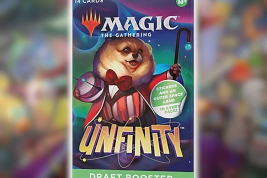 Som noget særligt indeholder Draft Booster Packs til serien Unfinity kun 7 Commons, men til gengæld også et Full-Art Space-ic Land, et Sticker Sheet Card, og 2 Attractions!