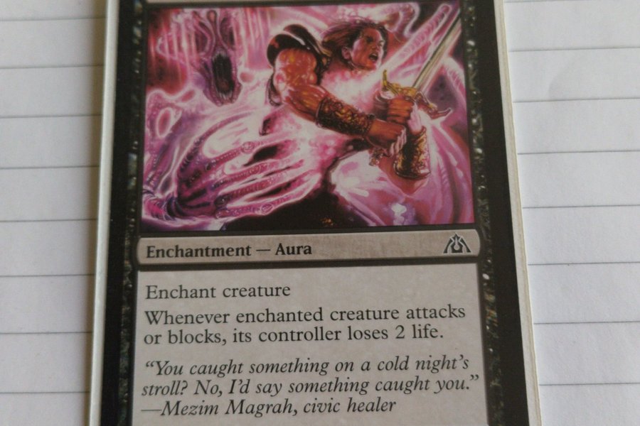 Kortet "Sinister Possession" är ett förtrollningsaura som förtrollar en varelse. När den förtrollade varelsen attackerar eller blockerar, förlorar dess kontrollant 2 liv.