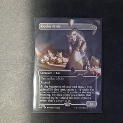 Kortet "Ocelot Pride" från Magic The Gathering. Kortet är av typen "Creature — Cat" och har förmågorna "First strike" och "lifelink". Det har också förmågan "Ascend (If you control ten or more permanents, you get the city’s blessing for the rest of the game.)". Texten på kortet lyder: "At the beginning of your end step, if you gained life this turn, create a 1/1 white Cat creature token. Then if you have the city’s blessing, for each token you control that entered the battlefield this turn, create a token that’s a copy of it."