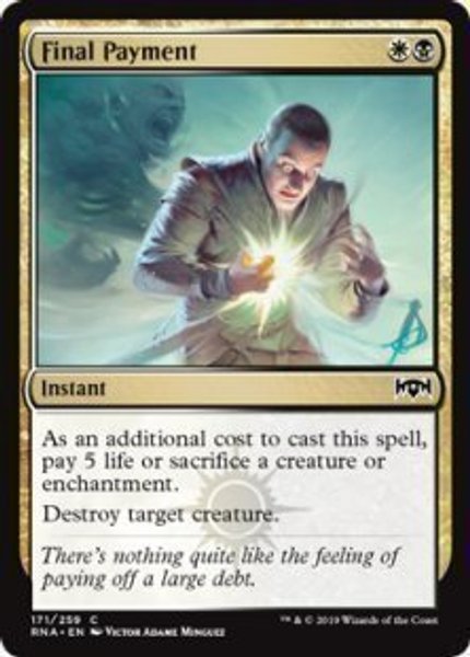 Final Payment är en effektiv och flexibel removal i vitt/svart som passar särskilt bra i sacrifice- och aristocrat-lekar.