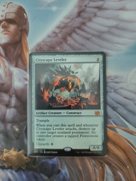 Kortet "Cityscape Leveler" från Magic The Gathering. Det är ett artefaktvarelse – konstrukt med Trample. När du kastar denna trollformel och när Cityscape Leveler attackerar, förstör upp till en icke-landpermanent. Dess kontrollant skapar en tappad Powerstone-token. Kortet har även förmågan Unearth 8. Kortet är 233/287 M från BRO-serien och illustrerat av Leon Tukker.