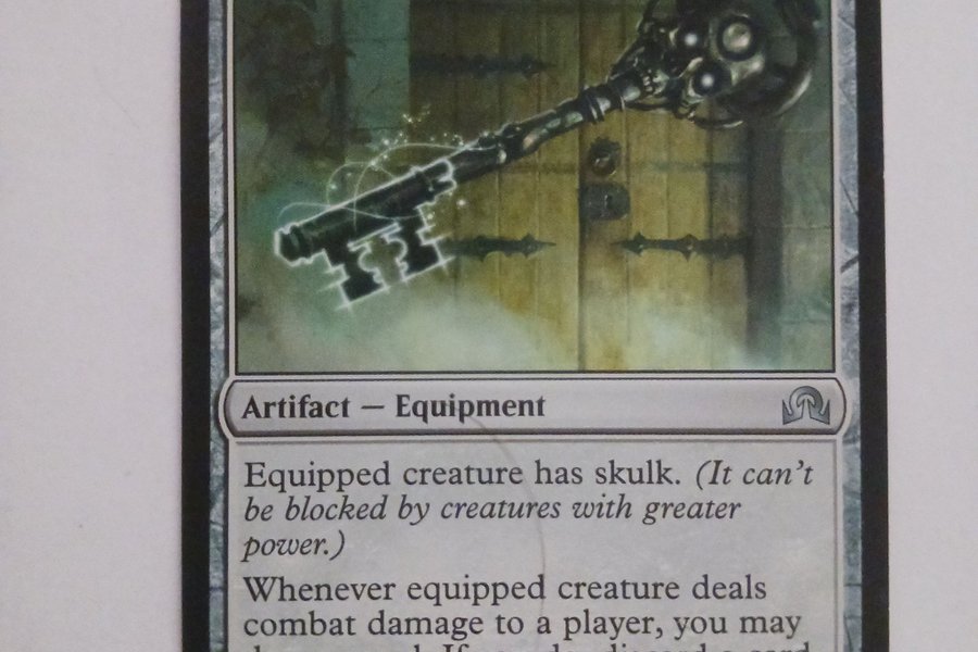 Kortet "Skeleton Key" är ett artefaktutrustning som ger den utrustade varelsen skulk. När den utrustade varelsen tillfogar stridsskada till en spelare, får du dra ett kort och sedan slänga ett kort. Utrusta kostar 2 mana.