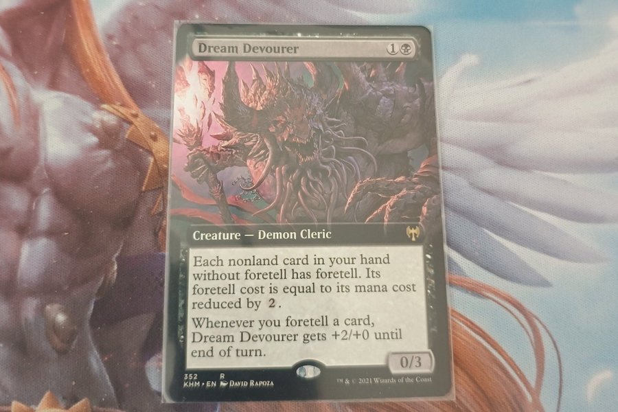 Dream Devourer är ett Magic the Gathering-kort av typen varelse – demonpräst. Kortet har förmågan att ge varje icke-landkort på din hand, som saknar förtälja, förmågan förtälja. Dess förtäljakostnad är lika med dess manakostnad reducerad med 2. När du förtäljer ett kort får Dream Devourer +2/+0 fram till slutet av turen. Kortet är numrerat 352 och är från upplagan KHM.
