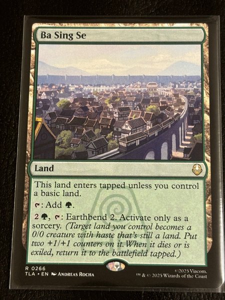 Kortet "Ba Sing Se" är ett landkort som kommer in i spel tappat om du inte kontrollerar ett grundläggande land. Det kan lägga till ett grönt mana. För två gröna mana och tappning kan du aktivera Earthbend 2 som en sorcery. Detta gör att ett land du kontrollerar blir en 0/0 varelse med haste som fortfarande är ett land, och får två +1/+1-räknare. När det dör eller exileras, återvänder det till stridsfältet tappat.