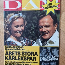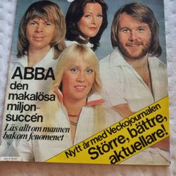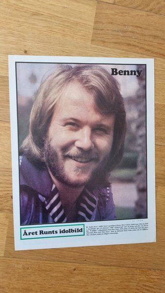 Idolbild från Året Runt föreställande Benny Andersson. Bilden är från 1977 och visar Benny Bror Göran Andersson, född i Stockholm den 16 februari 1946. Han debuterade som 16-åring och fick sin första hit, "Cadillac", med Hep Stars. Han har gjort flera LP-skivor med Hep Stars. Han var förlovad med Frida och har två barn från ett tidigare äktenskap.