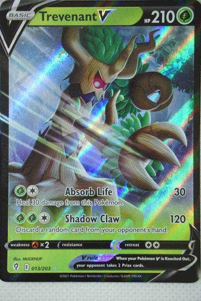 Pokemón Trevenant V 13/203 fra serien Evolving Skies der udkom i September 2021.