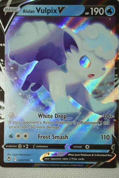 Pokemon Alolan Vulpix V 033/195 kort serien Silver Tempest der udkom 11. november 2022.