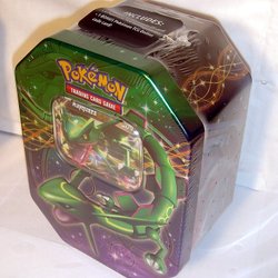 INNEHÅLLER. ( FIN PLÅTBOX +1 POKEMONKORT RAYQUAZA EX 100 HP + 4PAKET ur EX serierna )