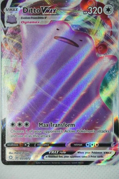Pokemón Ditto VMAX fra den yderst populære serie Shining Fates, her som Vmax kort.