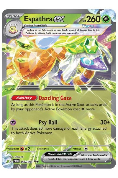 Pokemon kort Espathra ex 006/091 serien Paldean Fates der udkom 26. januar, 2024.