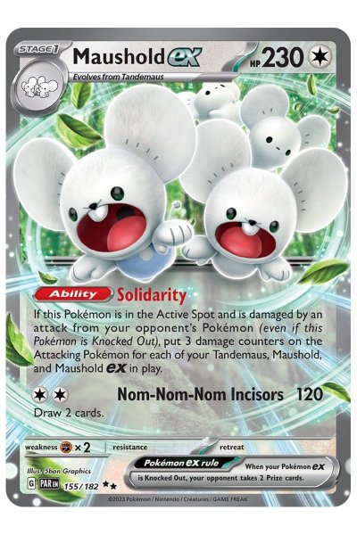 Maushold ex 155/18 fra Scarlet & Violet: Paradox Rift er et sjældent Ultra Rare EX-kort med 230 HP.