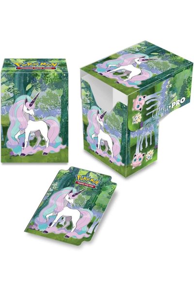 Pokemon Enchanted Glade deck box. Deck box med Galarian Rapidash, Jigglypuff, Clefairy, Swirlix, og Cutiefly.