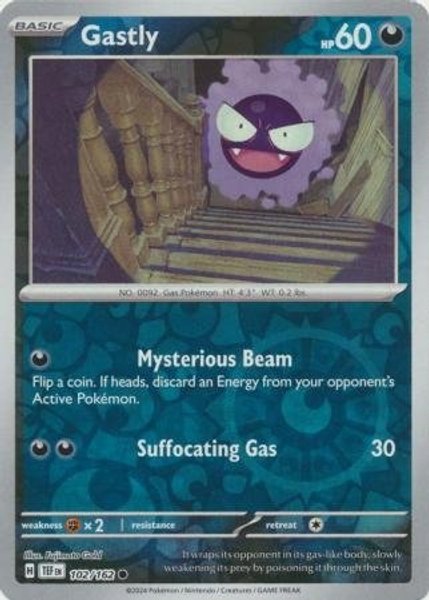 Här finns en Gastly - 102/162 - Common Reverse Holo.