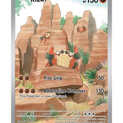 Sandile 216/198 Full Art fra Scarlet & Violet Base Set er et Illustration Rare-kort med en fængende holografisk effekt, der fremhæver Sandiles øje af snilde og kampberedskab. Som en Basic-frænder med 70 HP står det stærkt i både samlinger og spil. Sjældenheden “Illustration Rare” og det unikke limited print gør det til et særligt eftertragtet kort. Denne edition er et visuelt overflødighedshorn og et samlerobjekt i særklasse.