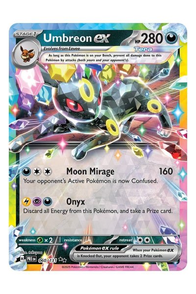 Umbreon ex 060/131 er et Ultra Rare Pokémon-kort fra Scarlet & Violet: Prismatic Evolutions med 280 HP.
