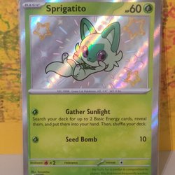 Säljer ett Pokémonkort med Sprigatito. Perfekt för samlaren eller Pokémon-entusiasten!