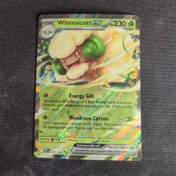 Whimsicott ex 005/086 er et Double Rare græs-Pokémon-kort fra Scarlet & Violet: White Flare (SV11W). Med 230 HP og angrebet Wondrous Cotton, der giver 50× skade afhængig af antallet af trænerkort i modstanderens hånd, kombinerer det taktisk spilstyrke med samlerappel. Kortet har lav retrætningsomkostning (0), og dens holo-finish giver et elegant præg, der gør den til et attraktivt valg til både spil og samling.
