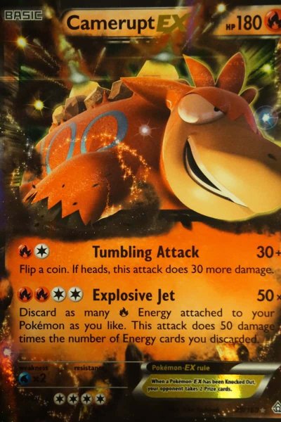 Explosive Jet 50x – Discard as many Fire Energy attached to your Pokémon as you like. This attack does 50 damage times the number of Energy cards you discarded.