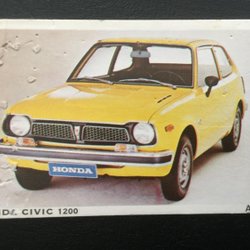 Varje bild har information om bilen eller motorcykeln på baksidan.