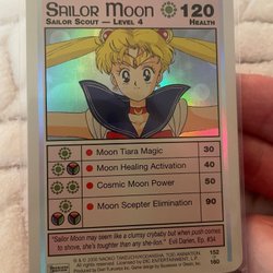 Jag säljer av en hel del av det rare sailor moon trading card game från 90-talet och tidiga 2000 talet, det finns inte mycket kvar av detta kortspel så priserna har gått upp med hundratals, tusentals kronor varje år på olika grejer, särskilt för att fanbasen för sailor moon är stor och fina arten korten har och lådor och så vidare, liknande som för pokemon går priserna bara upp och det finns knappt nåt kvar från detta card game tillslut kommer du vara en av dom med dom värdefulla sailor moon grejerna kvar.