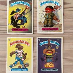 Samling av Garbage Pail Kids-kort från 1986. Perfekt för samlare av nostalgiska samlarobjekt. Se bilder för detaljer och skick.