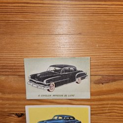 Samling av bilbilder med olika bilmodeller som Renault CV Standard, Volvo PV 444, Hillman Cabriolet, Sunbeam Sports Saloon, D.K.W. Coupé, Fiat 1900 A, Chevrolet Bel Air Sedan och Vauxhall Wyvern.