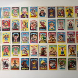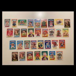Samling av Garbage Pail Kids kort. Perfekt för samlare och fans av dessa klassiska kort.