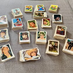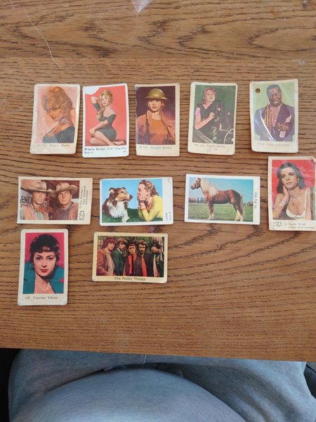 Diverse samlarbilder med bland annat Brigitte Bardot, Louis Armstrong, Caterina Valente, Natalie Wood, Eric Fleming, Clint Eastwood, Lassie och The Pretty Things. Väl använda