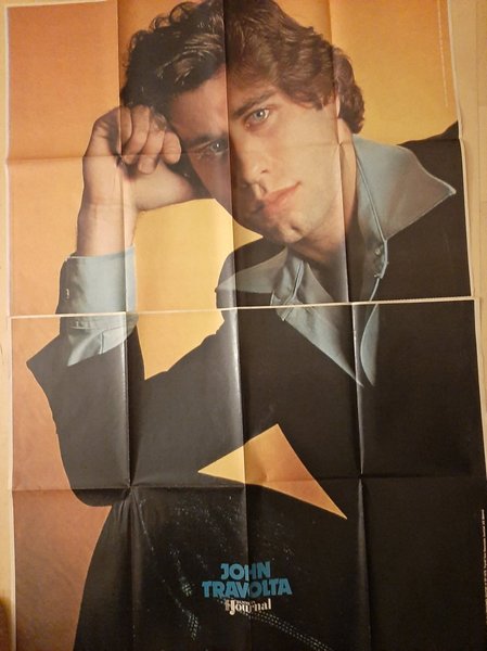 Välbevarad men vikt stor "Megaposter" i två delar med John Travolta. Mått h 51 cmx2, och br ca 70 cm.